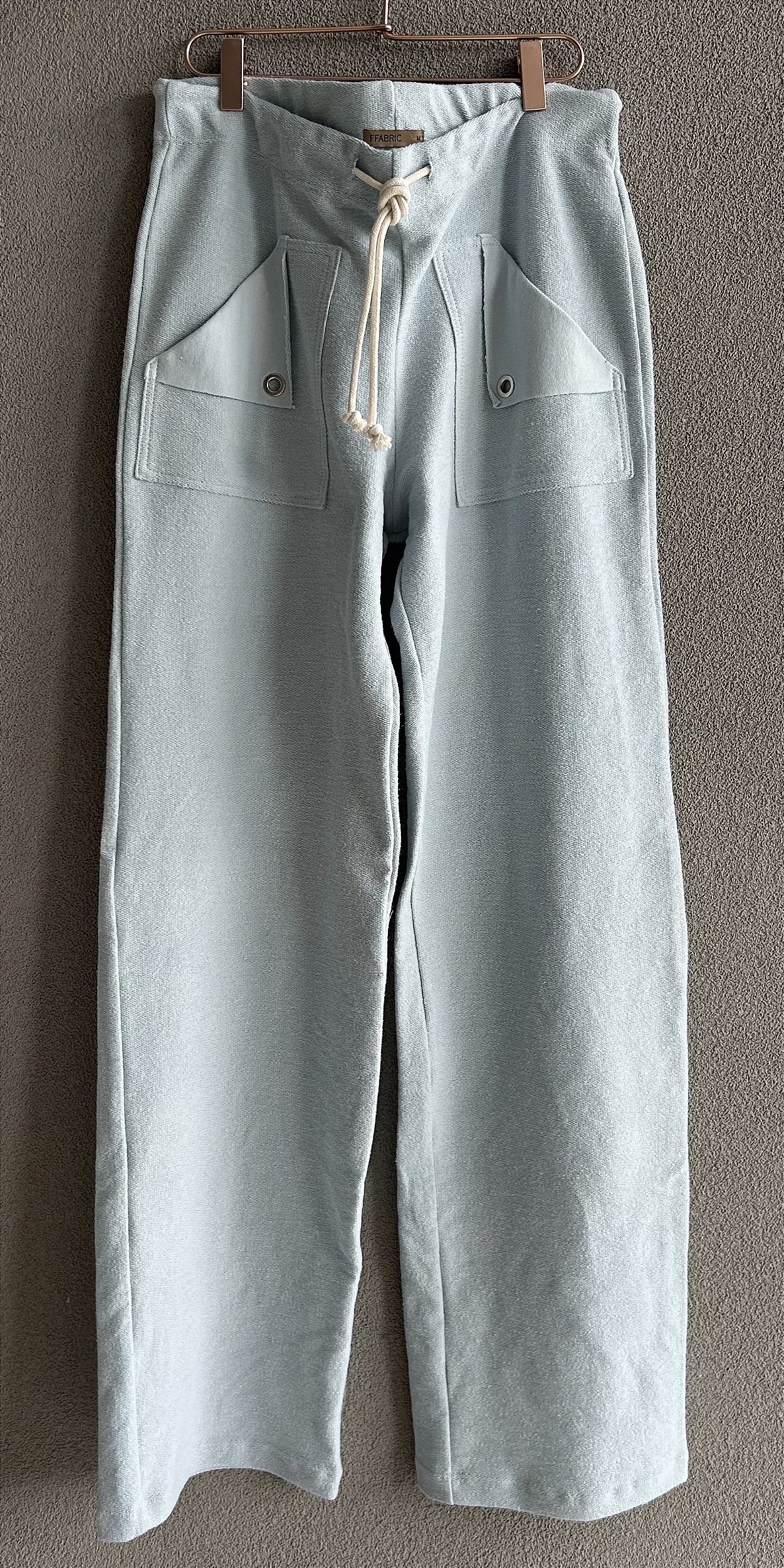 Calça de Moletom azul claro, com bolso envelope e cordão no cós.