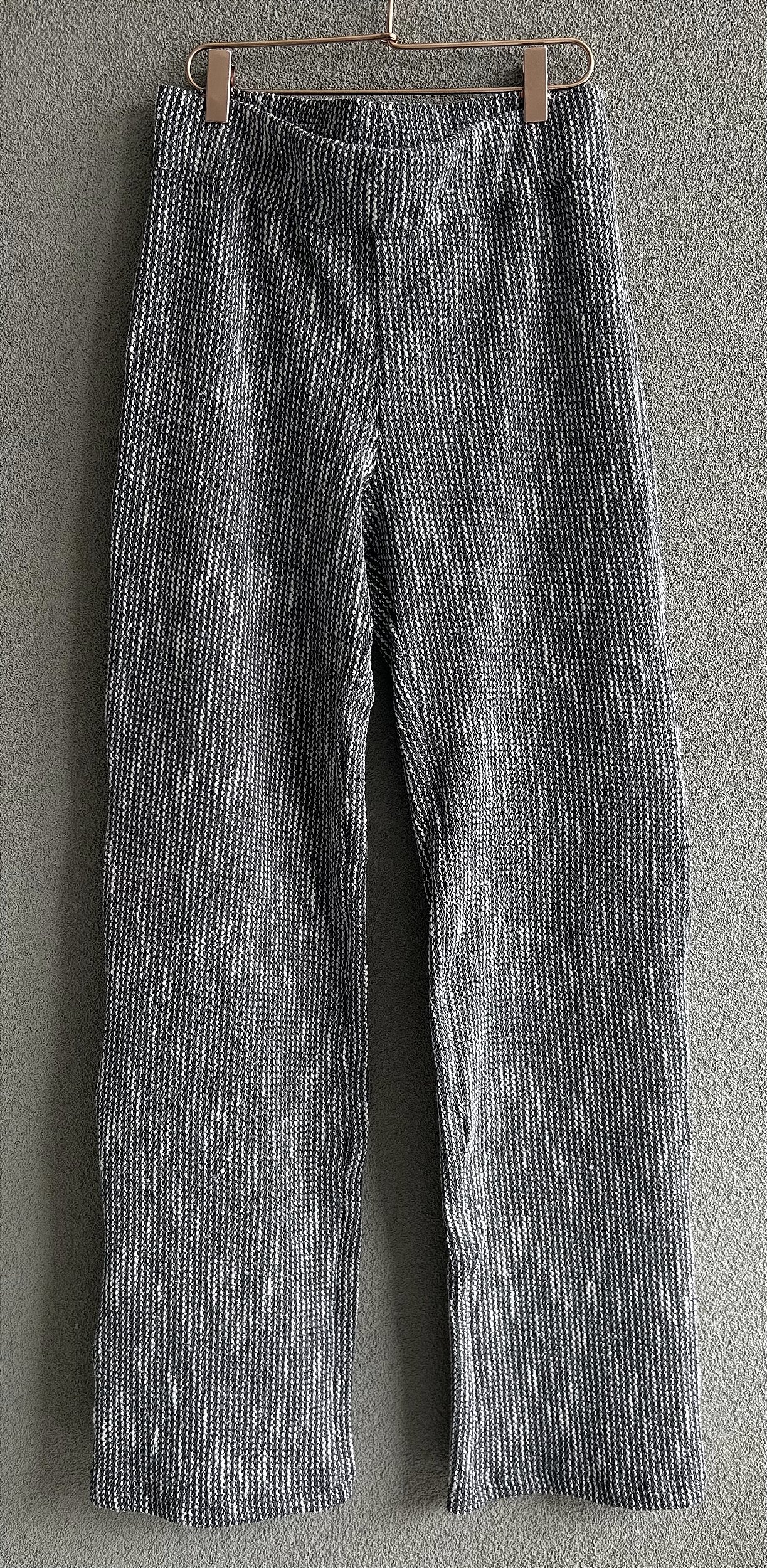 Calça Tricot grafit mesclado modelo reta com bolso atrás.